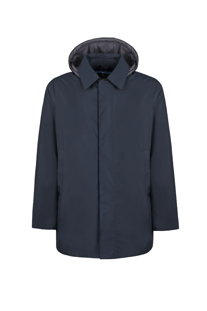 - Parka in tessuto tecnico con cappuccio con coulisse.