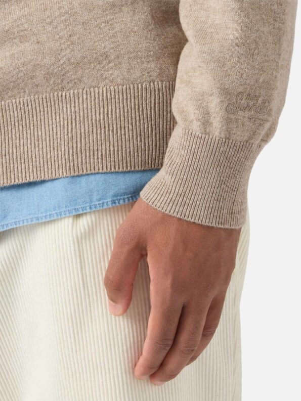 - Regent in lana e cashmere kaki è il girocollo fine-gauge che scivola sotto giacche e cappotti: morbido, leggero e impeccabile in ufficio