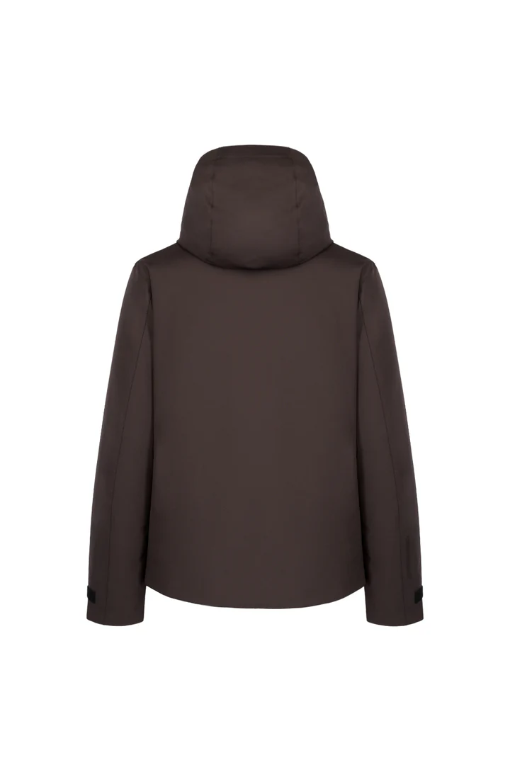 • Giubbino in tessuto tecnico three layers con membrana con cappuccio con coulisse.