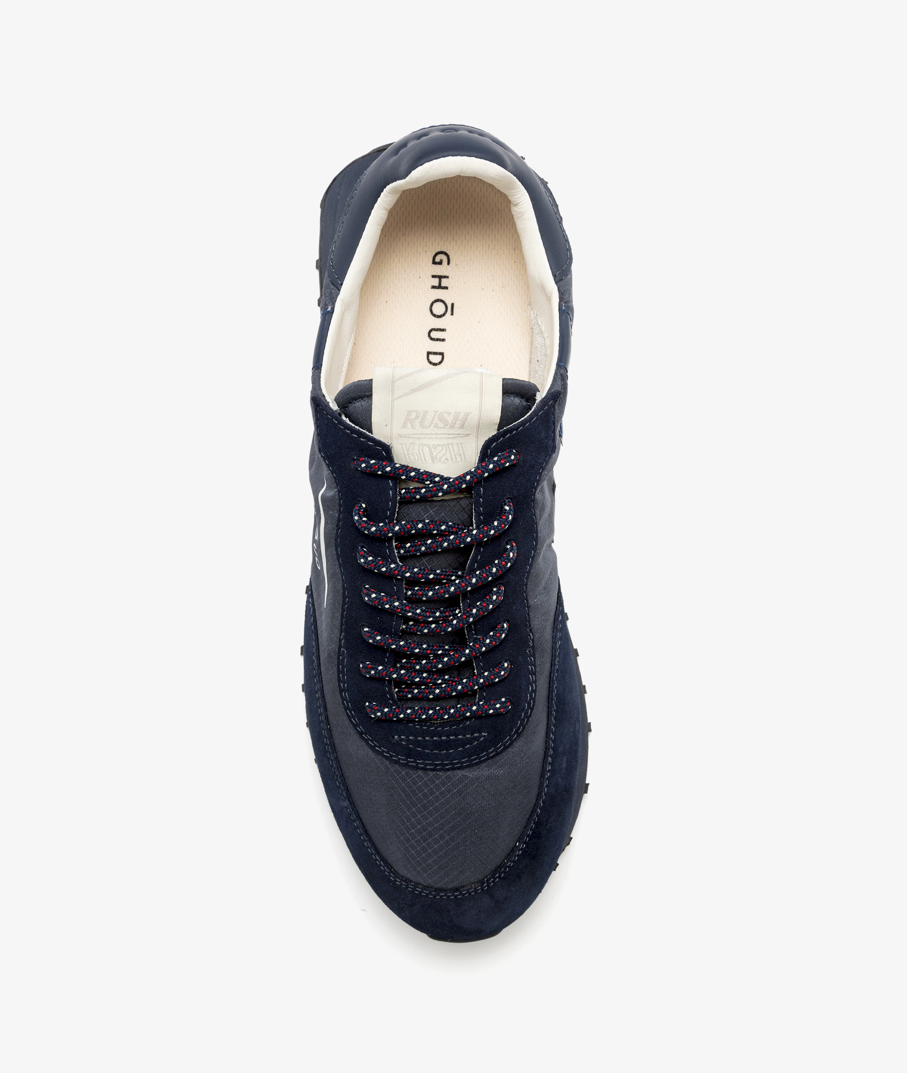 Nella tonalità navy, le sneakers Rush Framework di Ghōud sono realizzate in ripstop resistente con inserti in suede morbido.