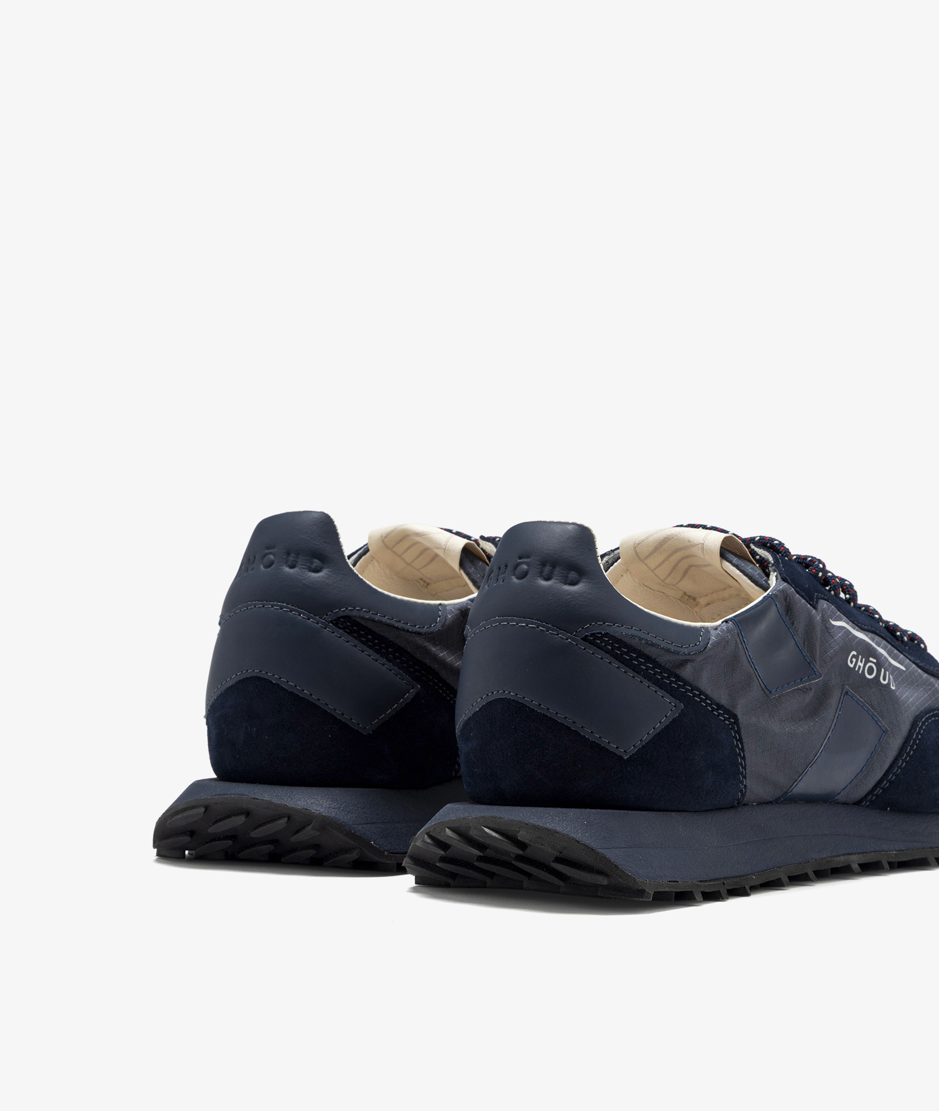 Sneakers in ripstop e suede navy con dettagli tecnici.