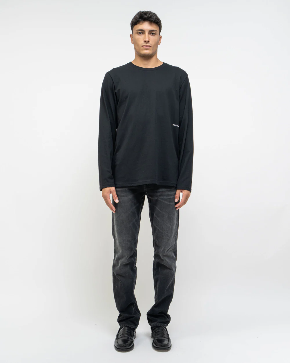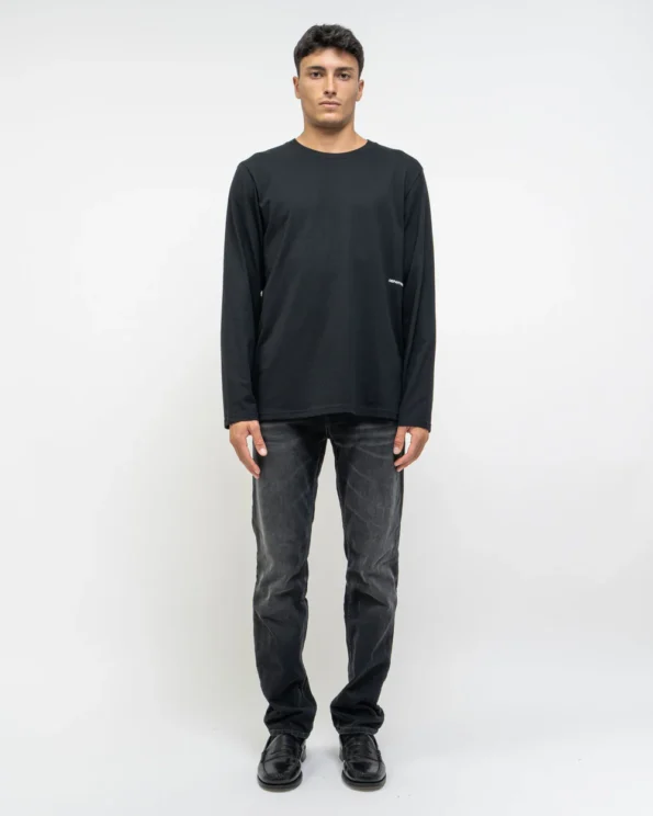 - T-shirt girocollo, maniche lunghe, fondo dritto, stampa micro logo davanti e dietro
